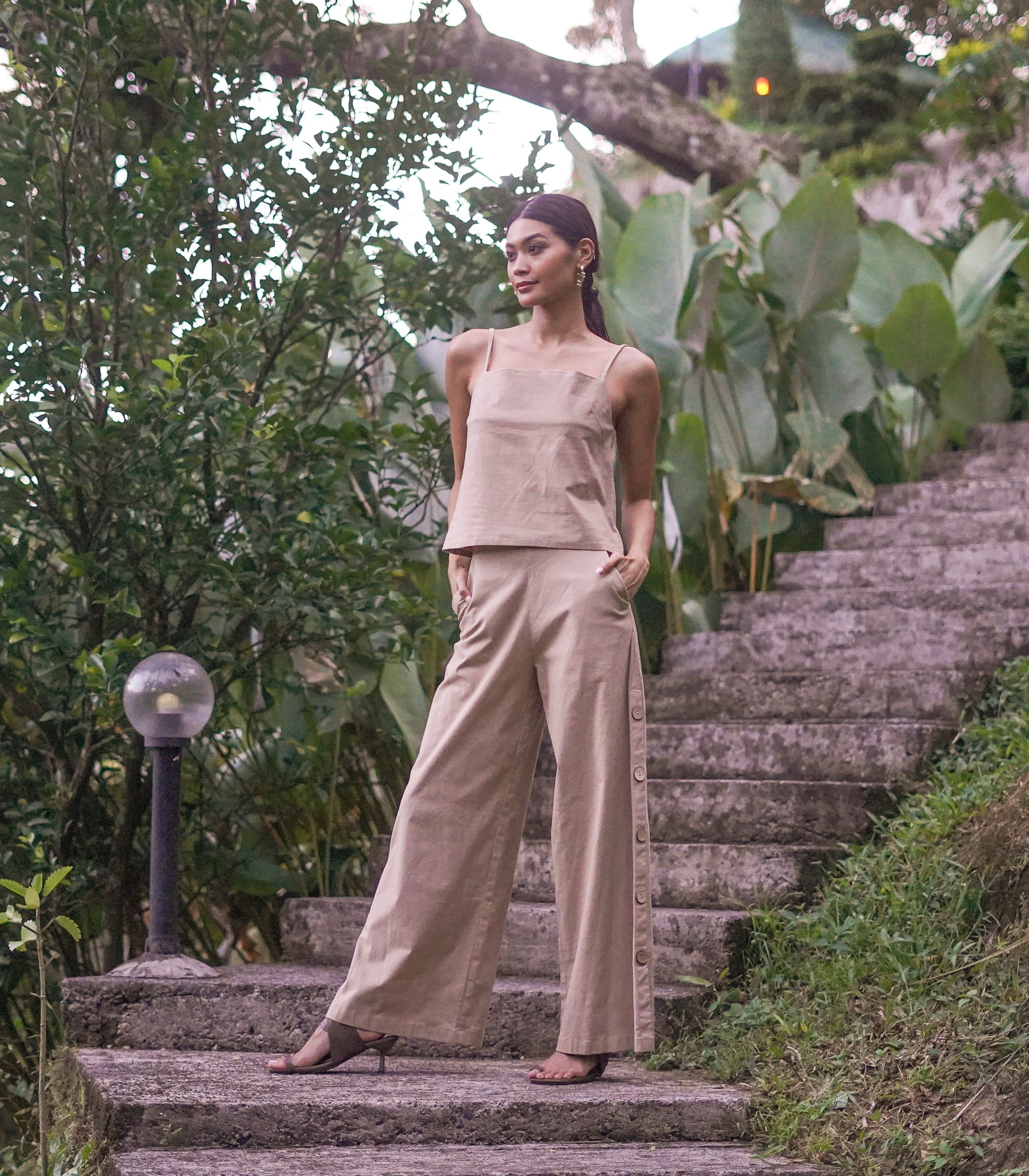 Abetone Top and Wide-Leg Pants with Side Buttons Set